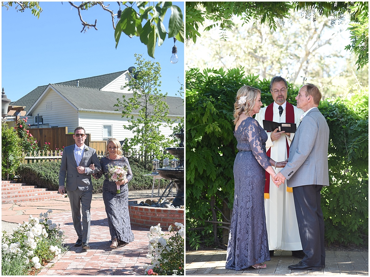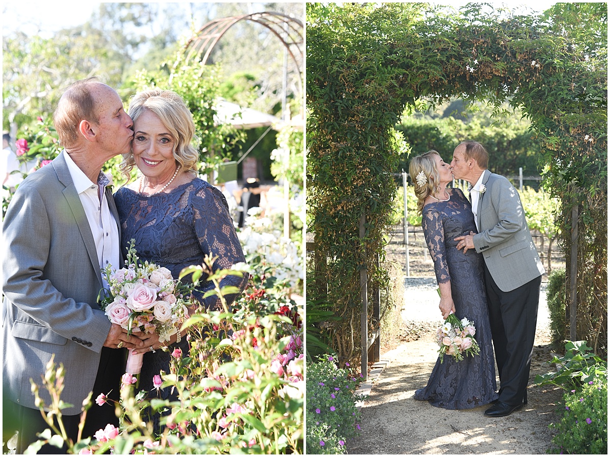 Mary and Tom are the epitome of two people who are madly in love with each other and are perfect for one another. I met Mary and Tom through Tom’s daughter Angie. Angie reached out to me regarding her family photos, and as we were wrapping up their session, she mentioned her father was getting married. Once I met Mary and Tom, I realized just how special they are! They met through an online dating service back in July of 2014 and the first night they talked on the phone clear to 5am!! After meeting in person three days later, well, the rest is history. Then in March of 2015, Tom proposed at an Angels and Dodgers game. As the wedding preparations began, the details fell into place. April 16th was a beautiful spring day, warm, clear, and a slight breeze. Below are some of my favorites from a beautiful venue here on the Central Coast: The Gardens at Peacock Farms. And this day is not complete without these awesome vendors: